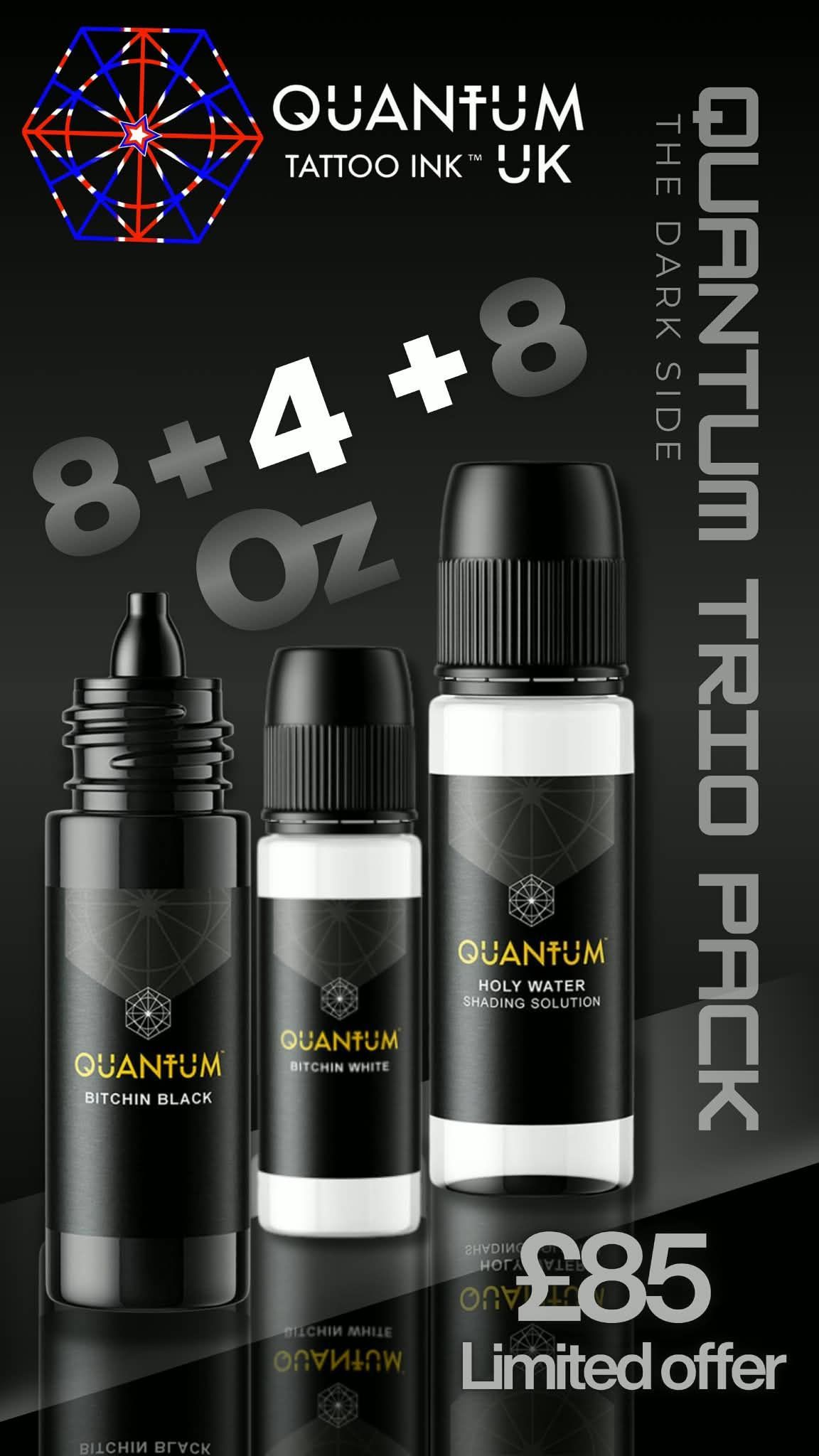 All of Quantum’s Black Tattoo Inks can be diluted and used for outlining or grey wash. We recommend using our HOLY WATER MIXING SOLUTION or distilled water to dilute the product.